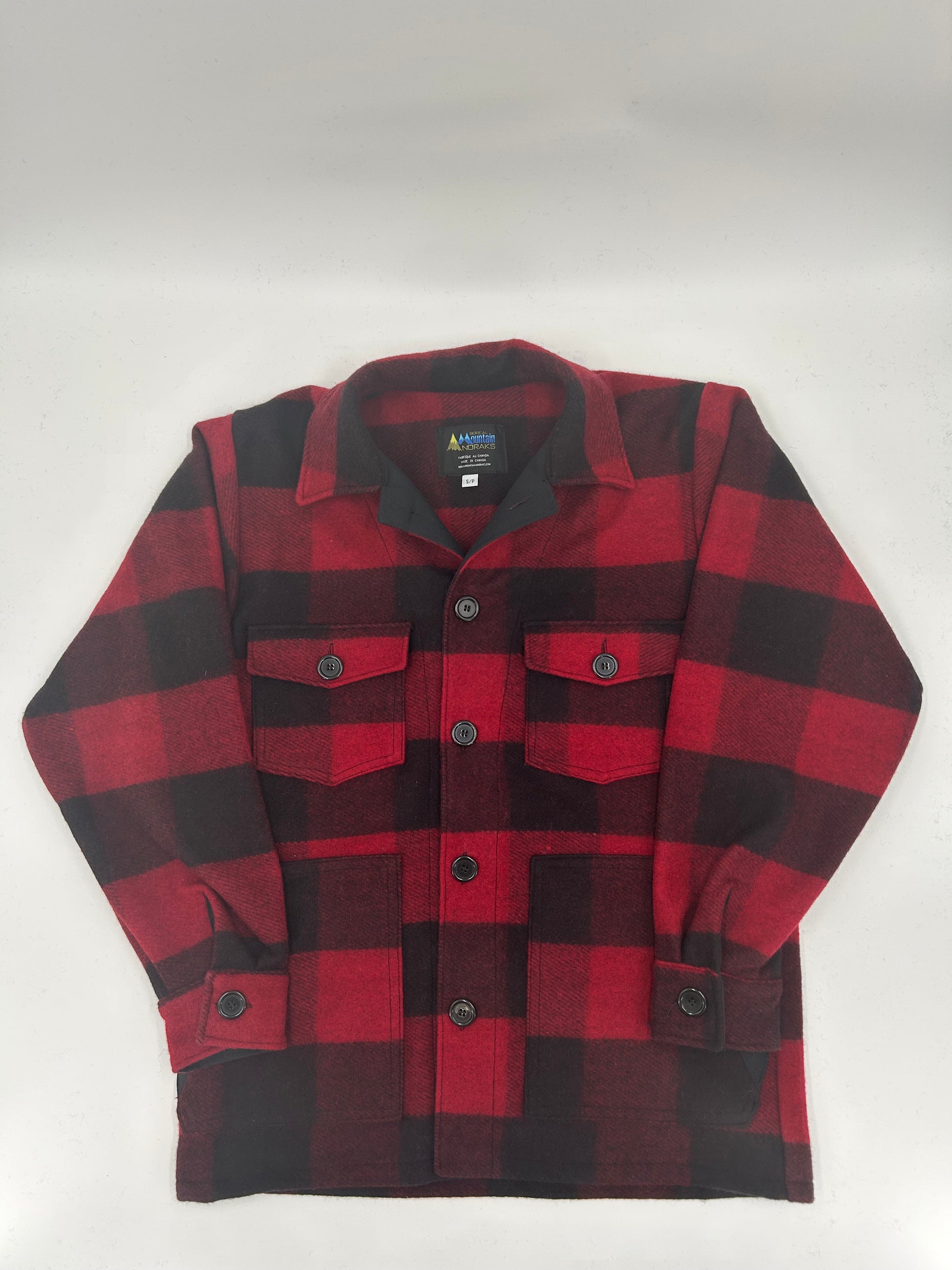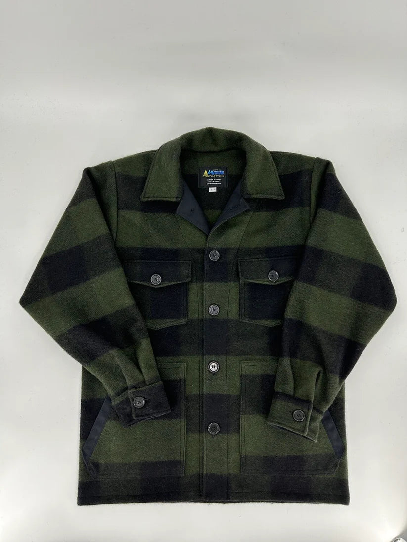 Our precisely finished Buffalo 3 season over shirt is built here Canada and features a front button closure, 2 front chest pockets with buttoned flaps to secure your valuables, 2 hand warmer side pockets. Pocket flaps and front button sections are reinforced with waxed cotton canvas. We added a yoke to the upper back of the garment. Constructed with advanced performance 525 gsm 85% wool fabric and available in 3 colours. Finished garment weighs in at approximately 3.5 lbs.
