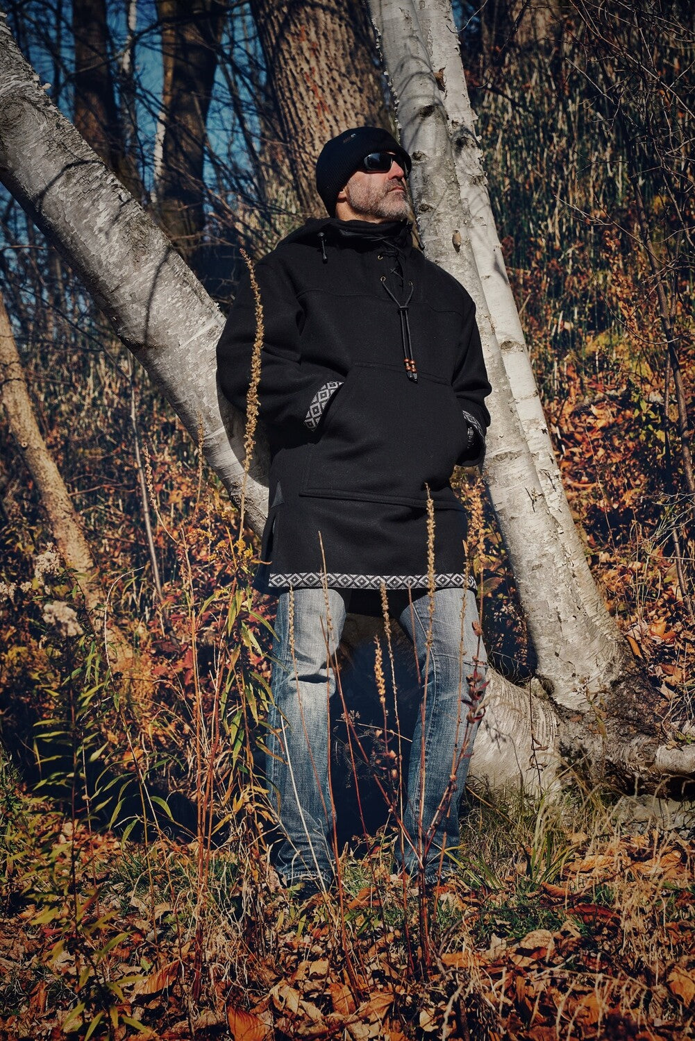 Inspired by traditional Indigenous outer shells, BMA anoraks are handmade in Canada with a commitment to provide you with heirloom quality, functional garments. Our anoraks are designed with a focus on thermal regulation– we make them wide and long to protect your vitals and allow for layering. In addition, we think reliability is especially important when out in the bush so we actively avoid using hardware that can fail like zippers and snaps. From the gauntlet to the sleeves to the kangaroo pocket, every detail was meticulously thought out to maximize your warmth and comfort while exploring nature.