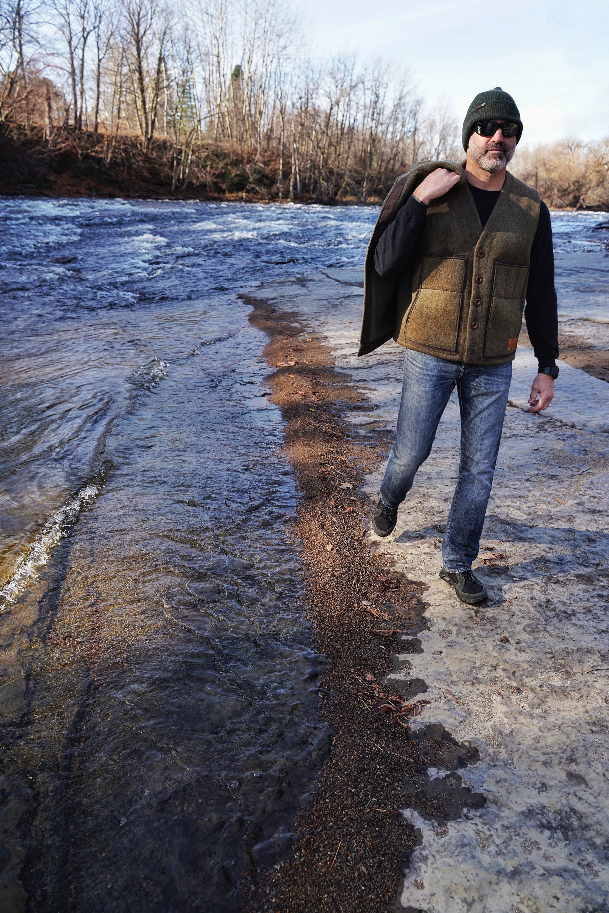 The Rough© Vest is built with the same 95% wool as our Rough© anorak. The two front pocket panels feature 2 lower slots ideal for resting your hands, as well as a 3-slotted utility pocket on the upper left side and a full one on the upper right. We also reinforced the backings with canvas for extra strength and durability. Finally, we’ve selected beautiful natural wood buttons derived from the walnut tree that are hand-sewn on each garment.